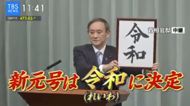 菅义伟官房长官宣布新年号是:「令和」(れいわ)!