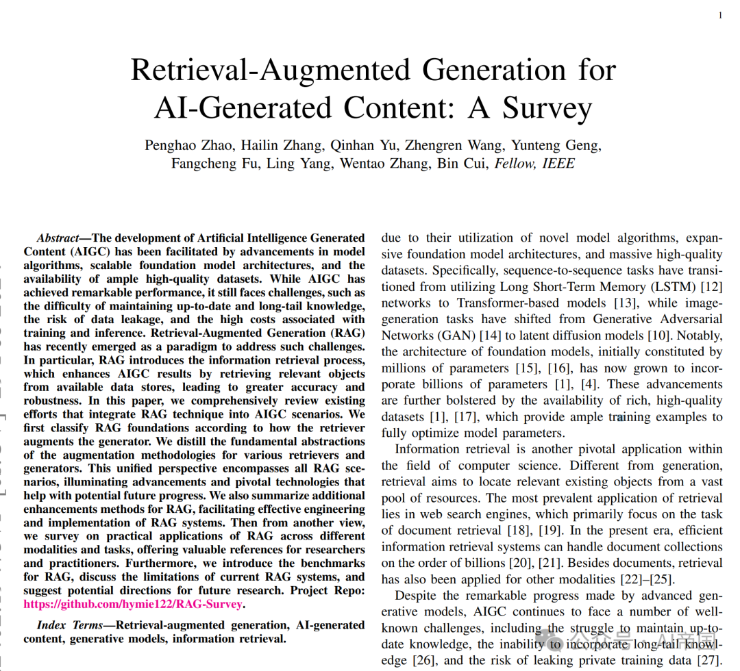 论文标题:Retrieval-Augmented Generation for AI-Generated Content: A Survey