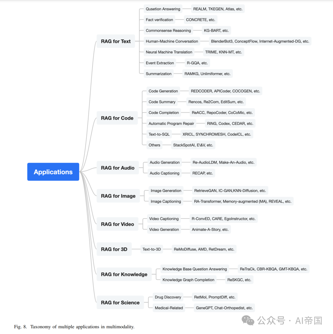 b) 数据增强:数据增强指的是在检索之前提前改进数据,例如删除不相关的信息、消除歧义、更新过时的文档、合成新数据等,这些操作可以有效地提高最终RAG系统的性能。MakeAnAudio [42] 使用字幕和音频文本检索来为无语言的音频生成字幕,以减轻数据稀疏性,并添加随机概念音频以改善原始音频。