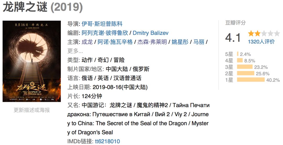你没有看错,这是成龙最新电影《龙牌之谜》的剧情简介;你也不用怀疑,这是一部负面评价居上的片。