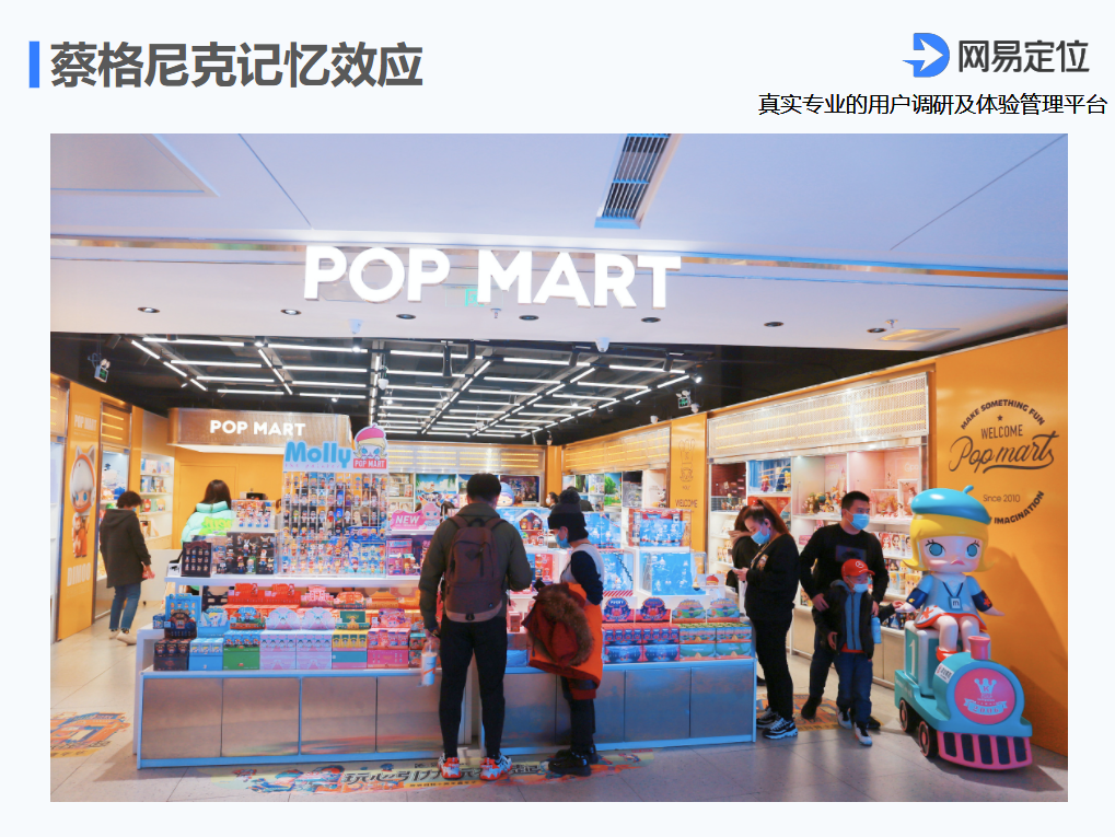 举个例子:如果一个用户打开一份问卷有 100 道题目,他可能会立刻产生抵触心理,并随手关闭页面。但是如果将 100 道题目,拆分为 5 个环节,每个环节 20 道题目,那么用户就不会感到过度的紧迫感,认为题量在可接受的范围内;并且,当一位用户完成了 3 个环节后,想要放弃时,会因考虑到一旦这时退出,就会前功尽弃,而打消放弃念头,继续进行问卷填写。这个设计通过环节的拆分,规避了用户看见大量题目时的畏难情绪,以非常简洁明了的页面让用户觉得这是件很容易的事情,从而开始起步操作。设置多环节问卷利用了用户的沉没成本心理。当用户走到第二步、第三步的时候,也许会觉得麻烦。然而因为前面的步骤里用户已经投入了时间,如果半途放弃,前面的努力也就前功尽弃了,所以用户很可能会为了不浪费“沉没成本”而继续填写。这个设计同样也巧妙地用到了蔡格尼克效应。用户前面已经完成了 3 个环节后,会有一种期待有始有终的情绪,这个情绪会继续推动用户,完成工作。在产品设计中,们可以在消费者的产品使用页面上添加进度条、圆圈、复选标记或步骤指示的标识,为消费者指明前进方向和完成度。利用好他们对于完成任务的愉悦感和成就感,从而增加消费者对产品的积极情绪。以泡泡玛特的玩法为例:泡泡玛特每一套主题盲盒中都会有极个别特定的“隐藏款”,抽中这些“隐藏款”的概率远远低于普通款式。为了完美地平衡了消费者抽不到“隐藏款”的失落心态,泡泡玛特不惜在每一套系列盲盒中安插“踩雷款”,这个看上去相对其它款式有些丑丑的娃娃给消费者营造了一种“输也是赢”的心理安慰——“虽然有点可惜,但至少没抽到最丑的款式!”这也是为什么黑色皮肤公仔在顾客中普遍评价不高,泡泡玛特却仍然坚持在几乎每一套玩偶中设置几款这样的黑皮公仔。除却自身对于审美多元的坚持,平衡顾客心理,让消费者对产品的好感度逐渐提升甚至“上瘾”也是其主要出发点之一。同样的,在营销模式上,蔡格尼克记忆效应也给予我们一定的启示:适当饥饿营销。饥饿营销是指商品提供者有意调低产量以期达到调控供求关系,制造供不应求的假象,维持商品较高售价和利润率的目的。