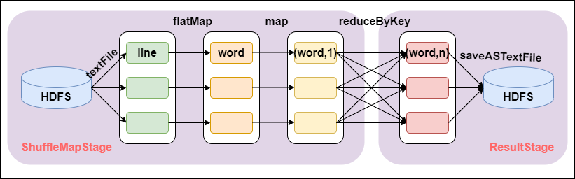 ResultStage基本上对应代码中的action算子,即将一个函数应用在RDD的各个partition的数据集上,意味着一个job的运行结束。