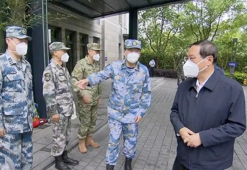5月22日,李强、龚正实地看望慰问军队联防联控机制前方工作组,与大家亲切交流,关切询问在沪期间工作生活情况,详细了解军地协同机制运行、方舱医院建设管理、精心施治护理患者等工作。