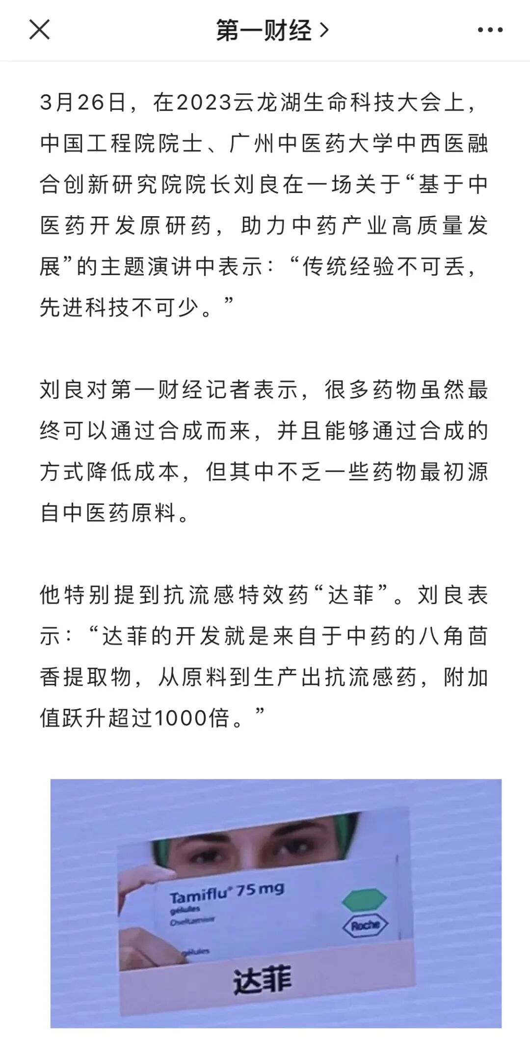 达菲,由国际制药巨头罗氏药业研发生产的100%纯现代化学药物,这居然都能通过神奇的话术归为中医药的功劳,真的是不服都不行……
