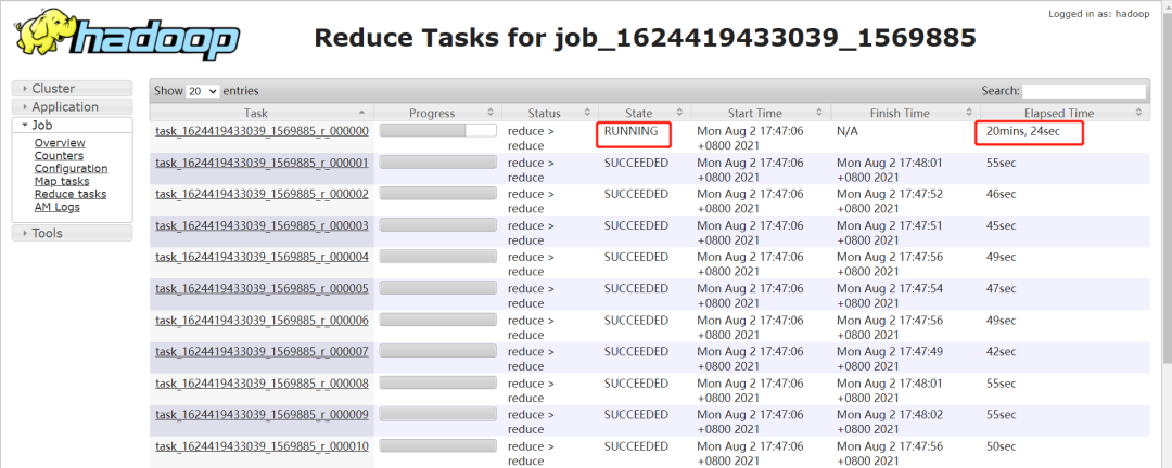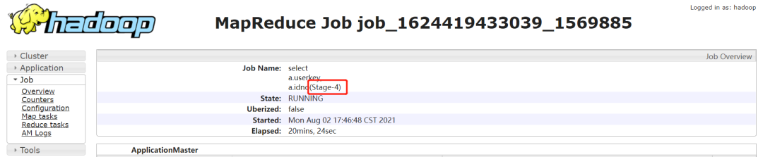 一般 Hive 默认的 jobname 名称会带上 stage 阶段,如下通过 jobname 看到任务卡住的为 Stage-4: