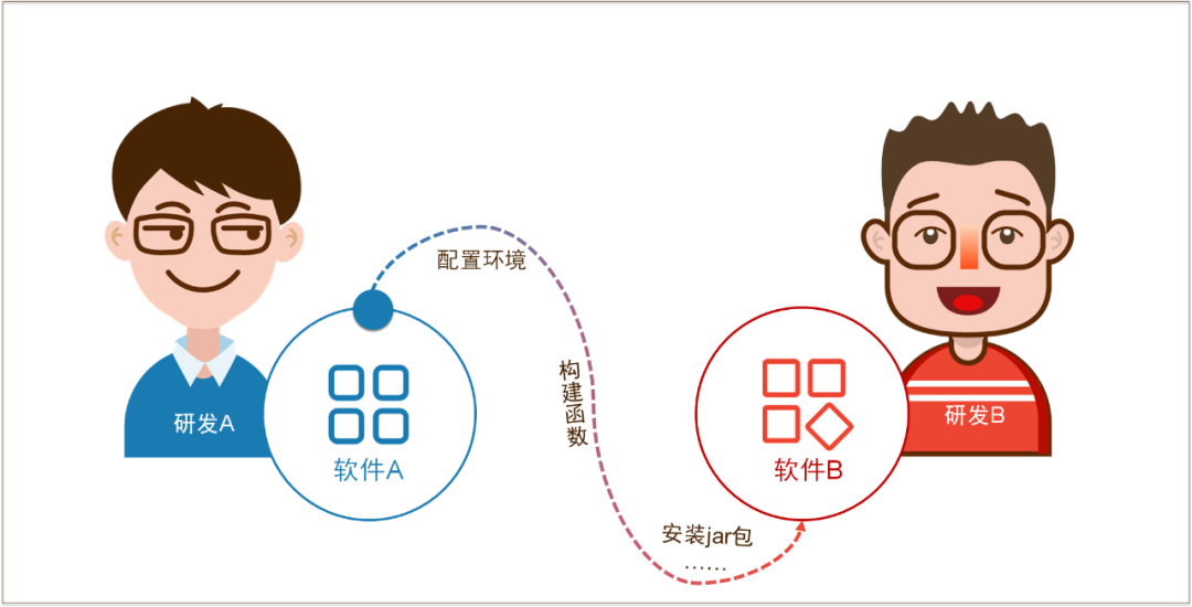 我们想象一个场景,开发者A开发了软件A,开发者B正在研发软件B。