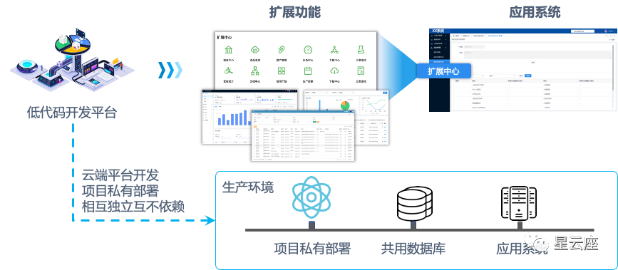 星云座是一款插件式低代码平台,它可以像功能插件一样挂接到应用系统上,连接应用系统的用户、数据和业务,提供低代码开发能力,在应用系统的基础上扩展新的业务功能,所以我们说它可以赋能应用系统具备低代码开发能力