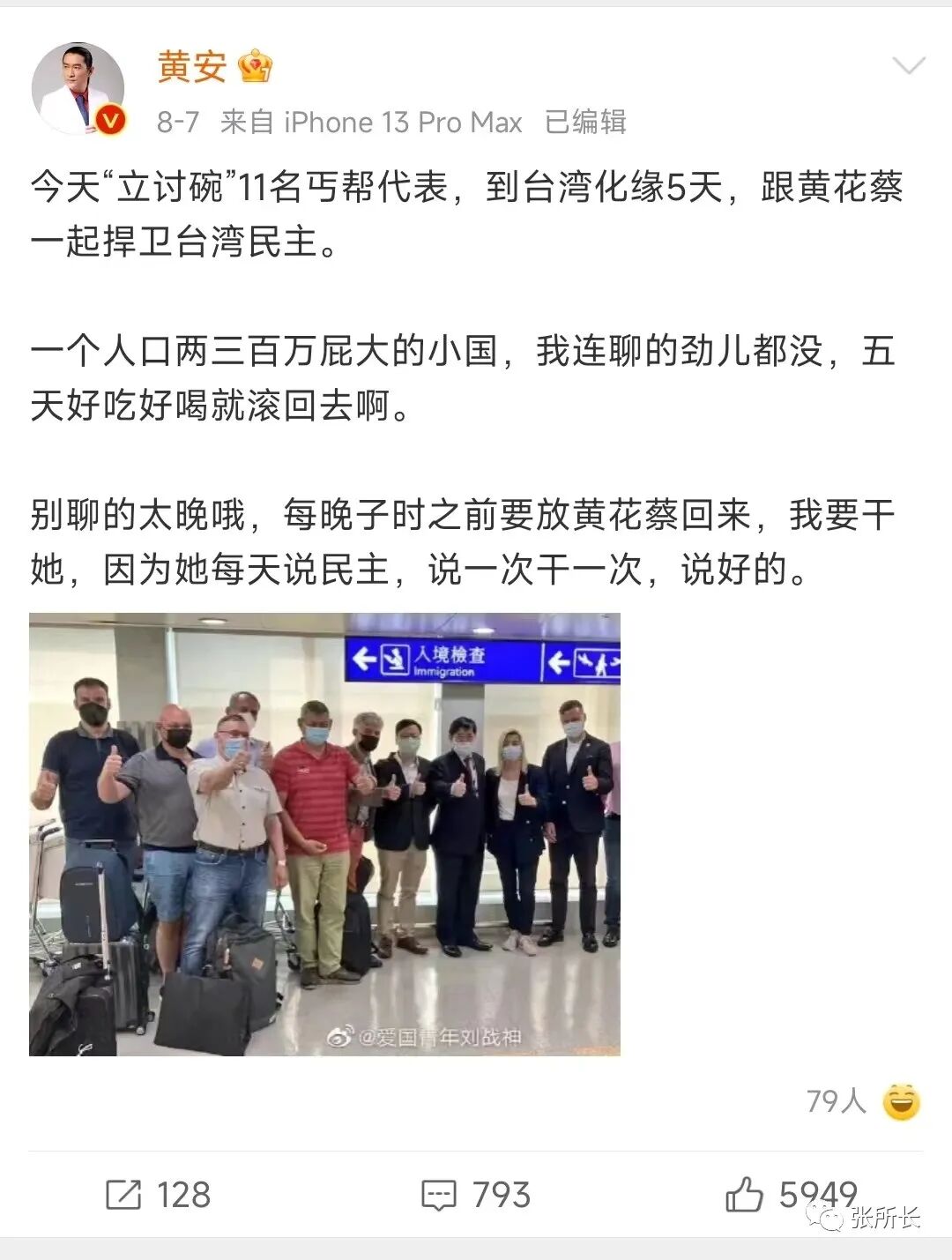 比如,黄安常居大陆之后,爱国心越发爆棚。他公开揭“台独”,批民进党,骂台湾政府,在2016年,还向相关部门举报了台独艺人,受到相关部门赞扬。