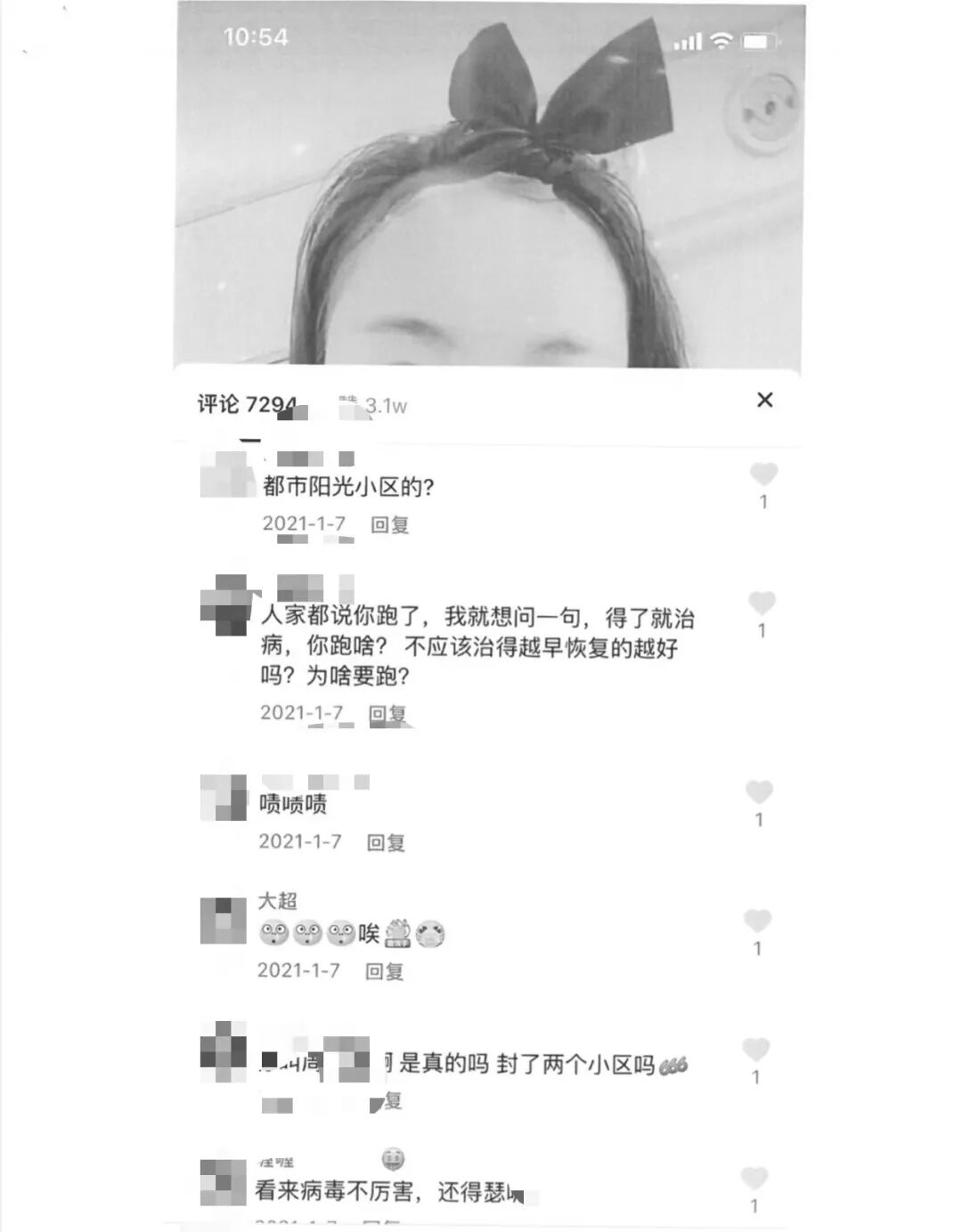 在医院的周其后又发布了一条抖音视频,给确诊的自己打气。这是个小号,日常最多不过二三十赞,「跟朋友圈似的」。但这条视频被越来越多人看到,一周后,涌进了 8000 多条评论。