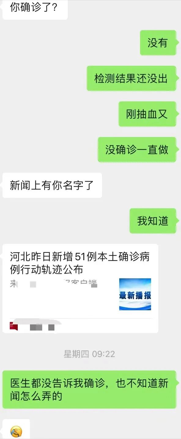 但我知道消息,是一个顾客转了有我名字的新闻链接。那个上面太清楚了,有姓名,有行动轨迹,稍微熟悉一点的就知道是谁。