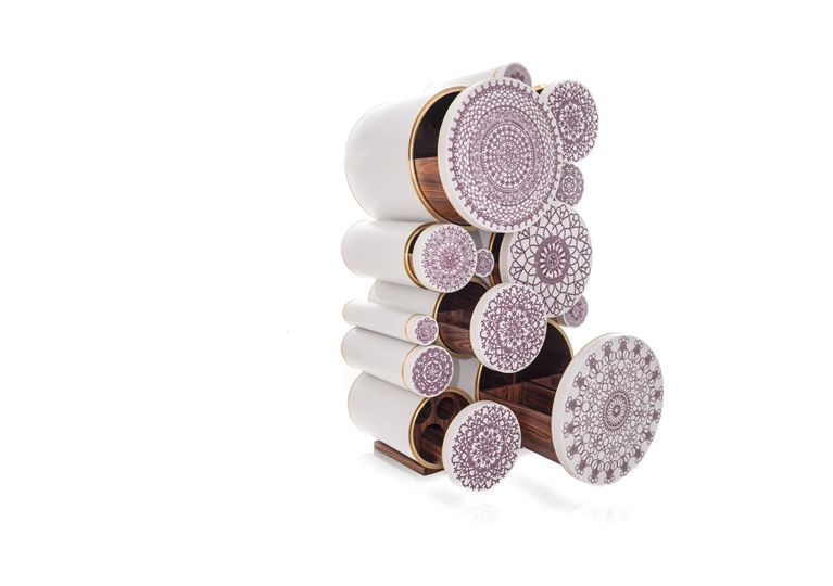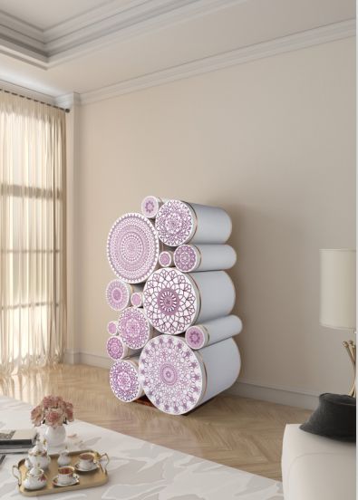Alma de Luce现场展出的El Ba’ia/Counter首饰柜华丽非凡,表面镶嵌有27000颗施华洛世奇®水晶,全球限量生产30个,每一个柜子后面都有专属编号,柜身由可丽耐(Corian ®)制作,不失为一件独一无二的设计精品。