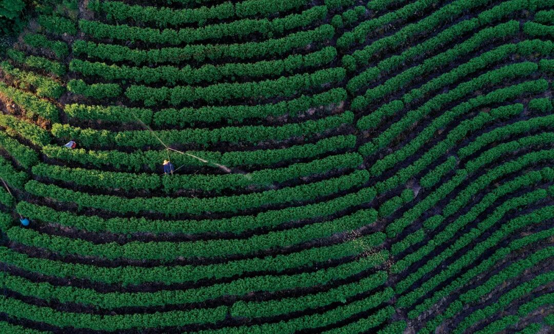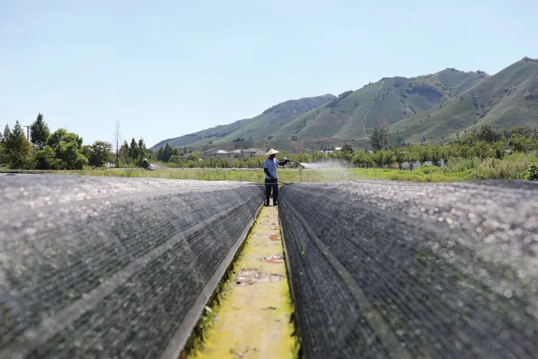 ▲阮祥敏在山脚黄金芽茶园安装喷灌。保住了 6 亩黄金芽,却无暇顾及山上的二十多亩白茶