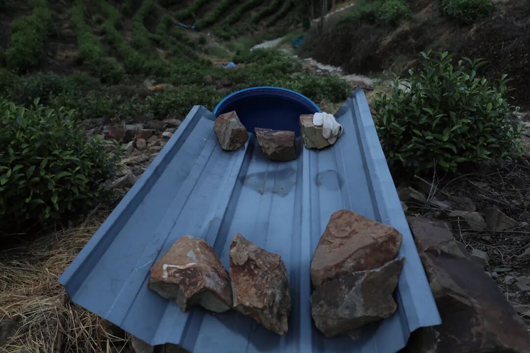▲一位茶农在准备浇灌茶园的水管。一些高山茶园因距离水源地较远,茶农需要准备多级水泵接力输水▲对于山上的茶园来说,水是非常宝贵的。许多茶农都会用简易装置收集雨水▲8月19日晚,大雨将至,茶农在茶园开渠引水。雨水让当地旱情得到暂时缓解