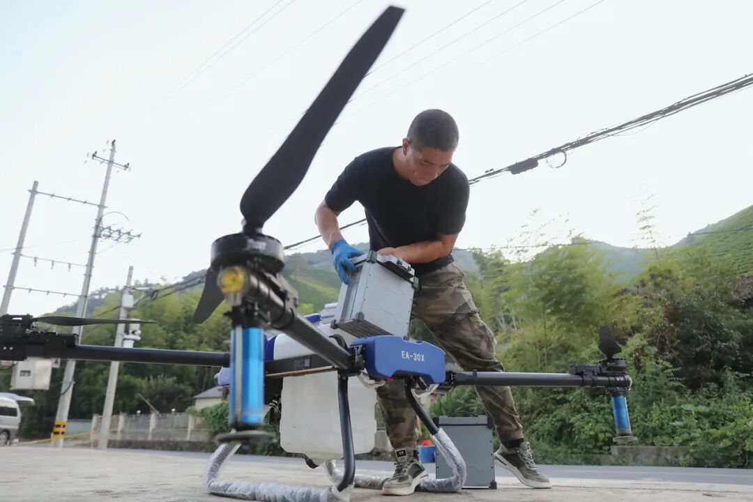 持续的抽水让山脚的多个水库干涸见底。村里启用的引水工程今年发挥了重要作用,但对于一些偏远的茶园,关键时期的无水之困,时刻威胁着白茶的存活。针对高温干旱的影响,溪龙乡在7月就组织村民进行茶园管理培训;农技专家也纷纷走进茶园现场指导茶农抗旱;安吉气象部门也派出人员前往黄杜村人工增雨……8月16日傍晚,干旱已久的黄杜村迎来了一场持续两小时的大雨。旱情暂时得到缓解,山下干涸的小水库也有了可供三五天的灌溉蓄水。对多日不眠的村民来说,这场大雨让他们终于睡了一晚安心觉。▲为缓解旱情,气象部门工作人员准备在黄杜村实施人工增雨▲溪龙乡,一家飞防公司工作人员在用植保无人机进行赤叶斑病害防治▲黄杜村,一位茶农在茶园浇水。对安吉的茶农来说,茶园就是他们的全部,这次前所未有的挑战是和高温干旱的一次耐力赛两天之后,高温再起,丁金林和老乡们重新回到茶园全力抗旱。作为黄杜村最早种植白茶的村民之一,丁金林没有遇到过这么严重的高温干旱。眼下不分昼夜的坚持,对他和村民们来说,是一场和高温干旱的耐力赛——跑赢了,那些枯萎的茶树来年还会生根发芽。8月24日,处暑第二天,安吉的最高气温降至30℃,高温退去的同时,伴随着茶农最盼望的晚来降雨。![]()