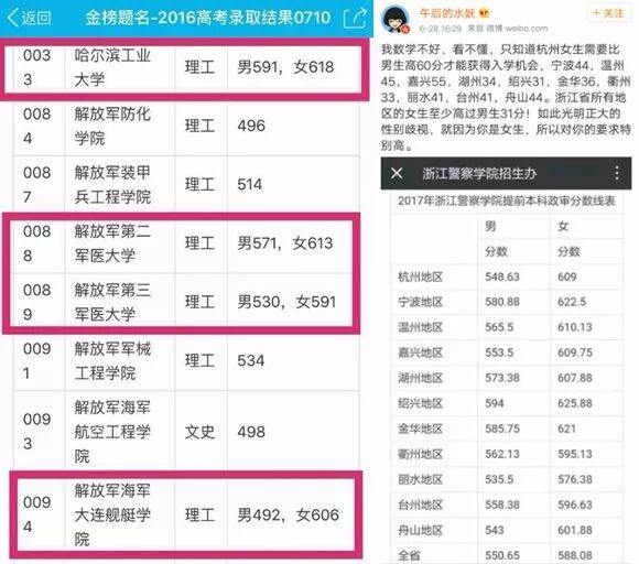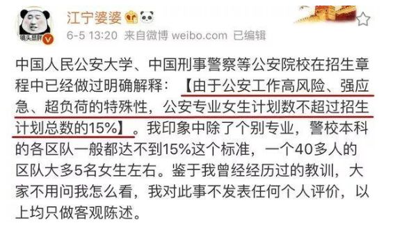 警校高考设立性别比例的事情,