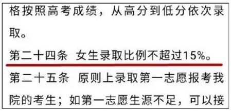 有人统计,虽然规定“不高于15%”,但实际操作中,招生比例有时会远低于这个限制,甚至有学校规定,女生比例不高于2.5%。