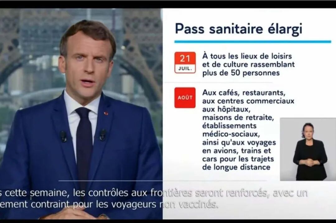 扩大“健康通行证”的适用范围,从7月21日起,12岁以上的法国人进入超过50人的活动和场所须持有“健康通行证”,从8月初开始,进入餐饮机构、游乐场、养老机构和购物中心,以及乘坐飞机、火车、长途大巴时必须持有“健康通行证”。