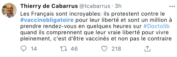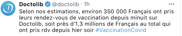 就酱,作为一枝独秀的Doctolib,在感受到了法国人彻夜不眠的热情之后,今早6点多就起床发推: