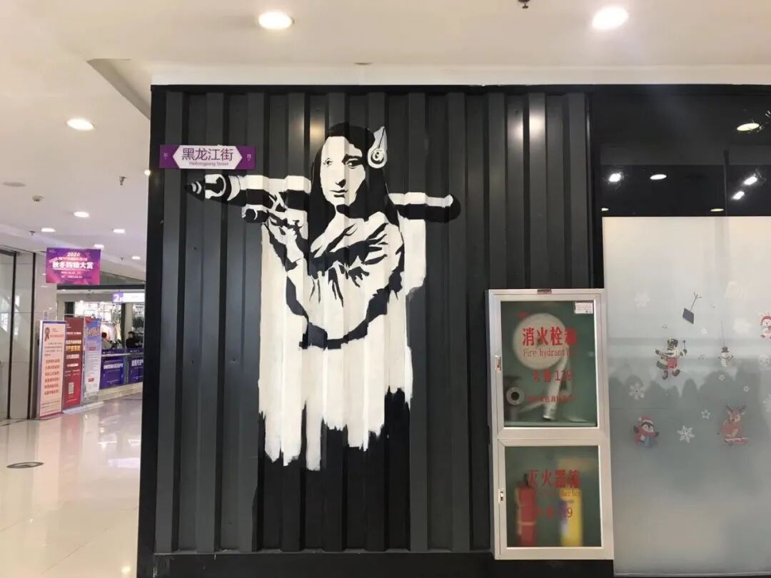 黑龙江街的蒙娜丽莎扛炮涂鸦,很黑龙江