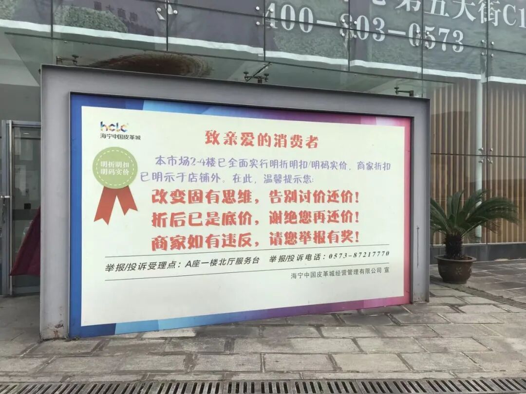 A座门口大幅海报提示我:皮革城早已不是传说中的皮革城了,明码标价,无需砍价。