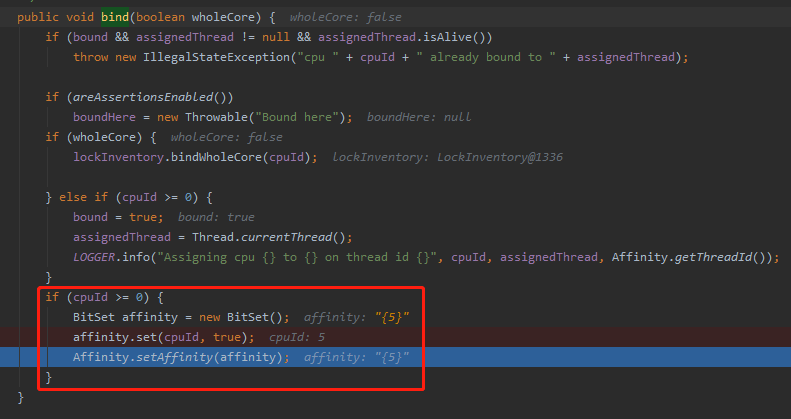 这里采用的是 BitSet,想绑定到第几个 CPU 就把第几个 CPU 的位置设置为 true。