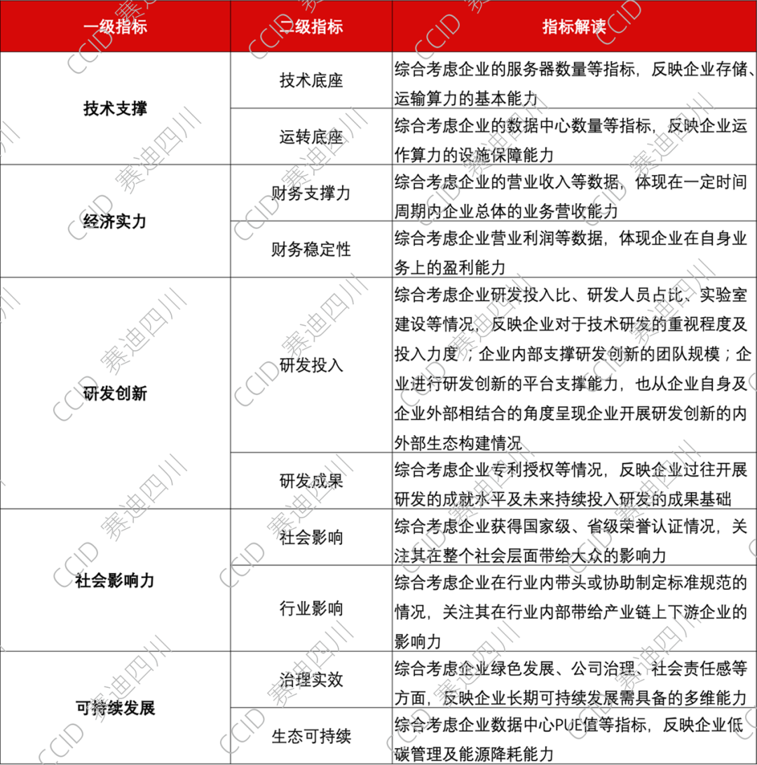 表1 算力服务企业综合竞争力50强评价指标体系解读