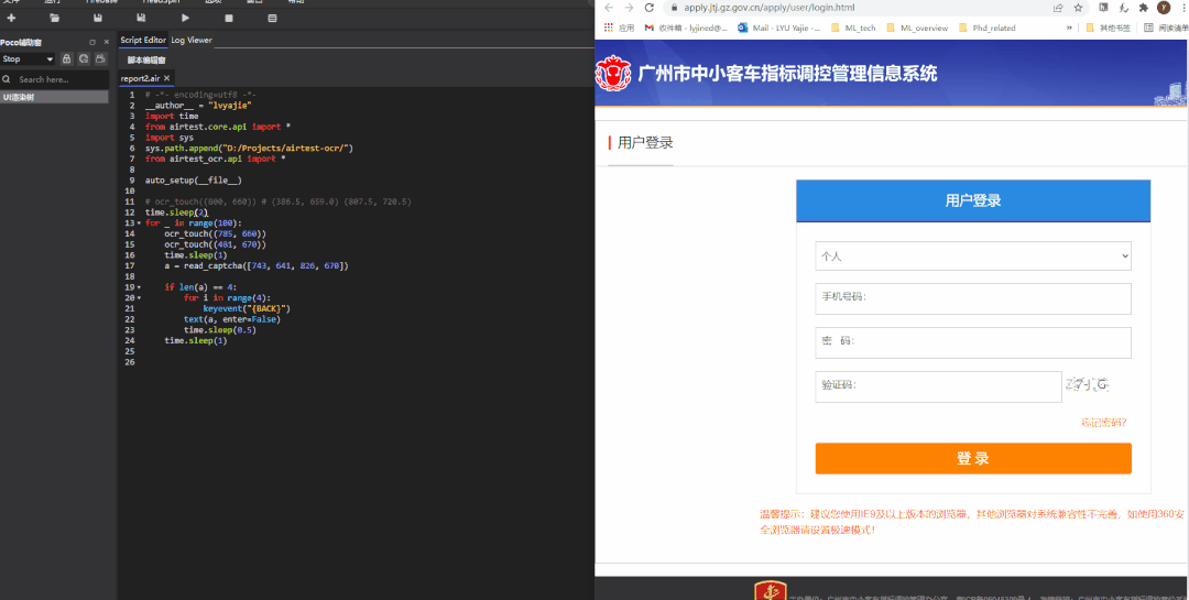 像oppo和vivo这类的手机,或者是iOS设备,在安装应用时,都有一个无法避免的问题,那就是输入密码。类似的情况,还有初次打开应用时,需要点击的一系列权限弹窗 。可以看到,这些页面,往往都是非常简单的文字识别场景,比如识别一些类似“安装”、“输入密码”、“同意”、“取消”等等文字。这些应用场景下,airtest的识别文字可信度就没那么高了,更适合用Airtest-ocr来进行:3)验证码识别场景