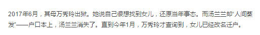 这九年的时间里,涉案人员家属不断申诉,全部被驳回。受害人汤兰兰的爷爷死在了监狱里,爸爸至今无期。而九年后,当汤兰兰的母亲万秀玲出狱后,依然否认当年曾经强迫自己女儿卖淫,想伸冤。