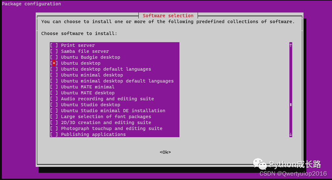 sudo apt install tasksel 这个包就是列举出所有的桌面环境让你选择安装的sudo tasksel空格是选中,上下键切换,tab切到OK键。这里我就勾选Ubuntu desktop,其他的也不知道是啥sudo apt install tigervnc-standalone-server 安装vncservervncpasswd sudo -H vncpasswd sudo -H -u gdm vncpasswd 设置vnc的密码,文章说要设置三次(当前用户、root和gdm)。输入两次密码后会提示要不要设置只能看不能操作的密码,选n跳过就行sudo mv /usr/bin/Xorg /usr/bin/Xorg_old sudo vim /usr/bin/Xorg_new 备份旧配置文件和编辑新配置文件#!/bin/bash