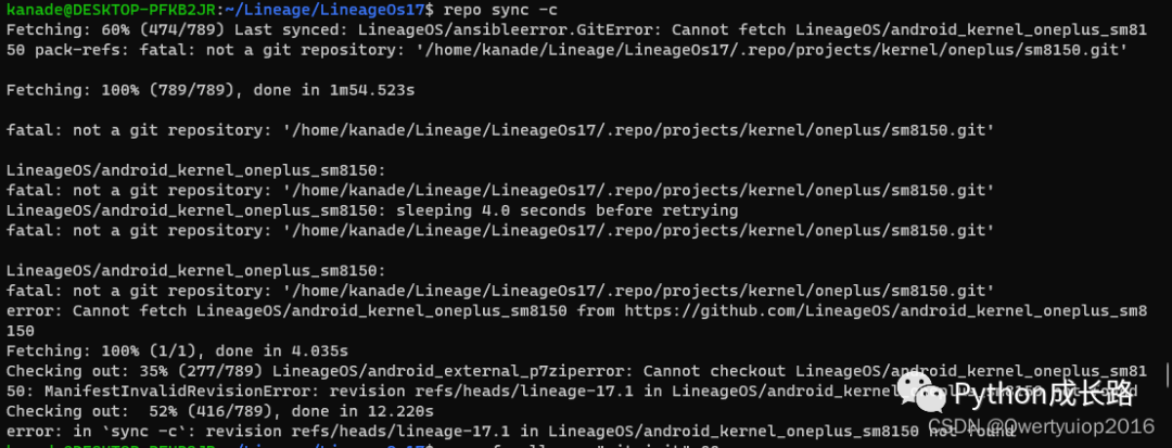 repo sync -c想重新同步一次,但同步的时候又出现了错误2。
