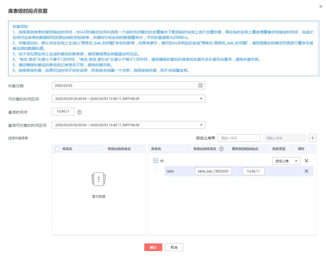 描述:通过某一时间点上的库表恢复数据,会在实例上新生成恢复后的库表,不会导致实例数据被覆盖。