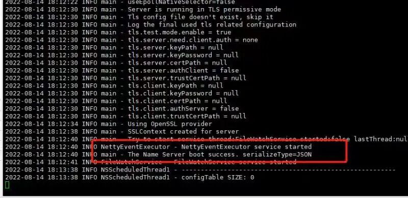 -server -Xms512m -Xmx512m -Xmn256m -XX:MetaspaceSize=32m -XX:MaxMetaspaceSize=50m修改完之后,执行如下命令就可以启动NameServer了