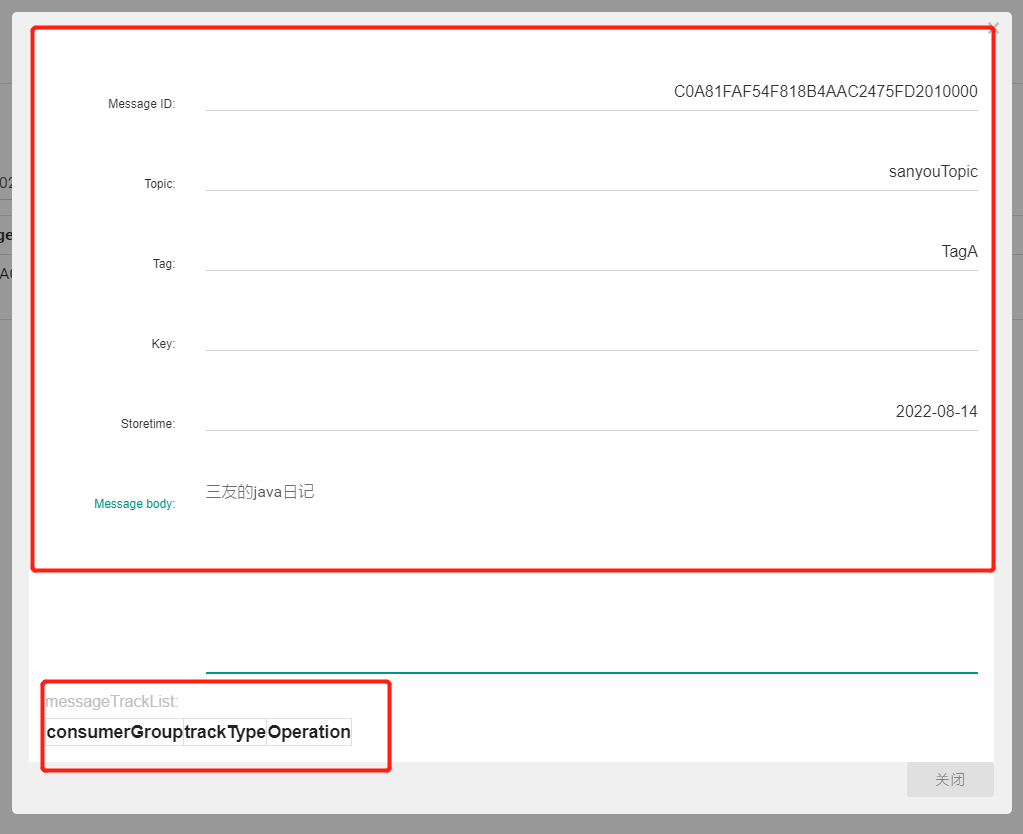 Message msg = new Message("sanyouTopic", "TagA", "三友的java日记 ".getBytes(RemotingHelper.DEFAULT_CHARSET));