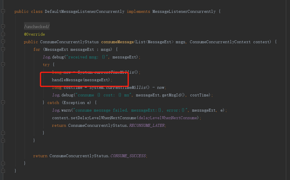 return ConsumeConcurrentlyStatus.CONSUME_SUCCESS;