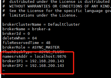 不过这里我还建议再修改一处信息,因为Broker向NameServer进行注册的时候,带过去的ip如果不指定就会自动获取,但是自动获取的有个坑,就是有可能你的电脑无法访问到这个自动获取的ip,所以我建议手动指定你的电脑可以访问到的服务器ip。