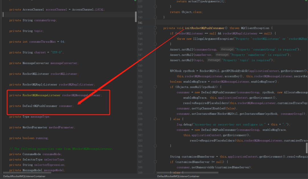 从这可以看出,会为每一个加了@RocketMQMessageListener注解的对象创建一个DefaultMQPushConsumer,所以最终也是通过DefaultMQPushConsumer消费消息的。