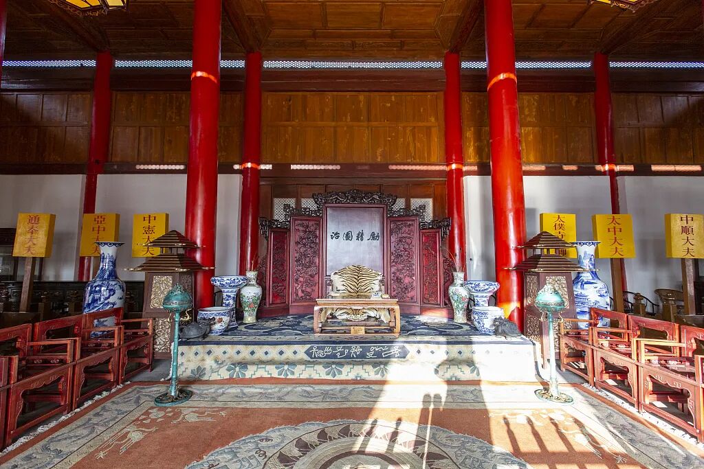 ▲丽江木府议事厅内景。(图片来源:视觉中国)