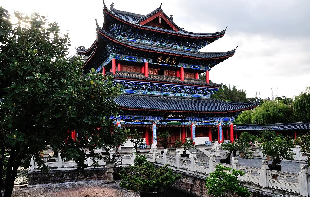 丽江木府旁牌坊上“天雨流芳”四个大字,在纳西语中为“读书去吧”之意。明朝中期开始,木氏土司木泰大力提倡学习儒家文化,开创了纳西人用汉字写诗的先河。重视儒家文化,在丽江“万卷楼”也可窥见一斑。木氏土司用十余代人的心血,花巨资引进藏书,“凡宋明各善本以数万计,群书具备”。![]()