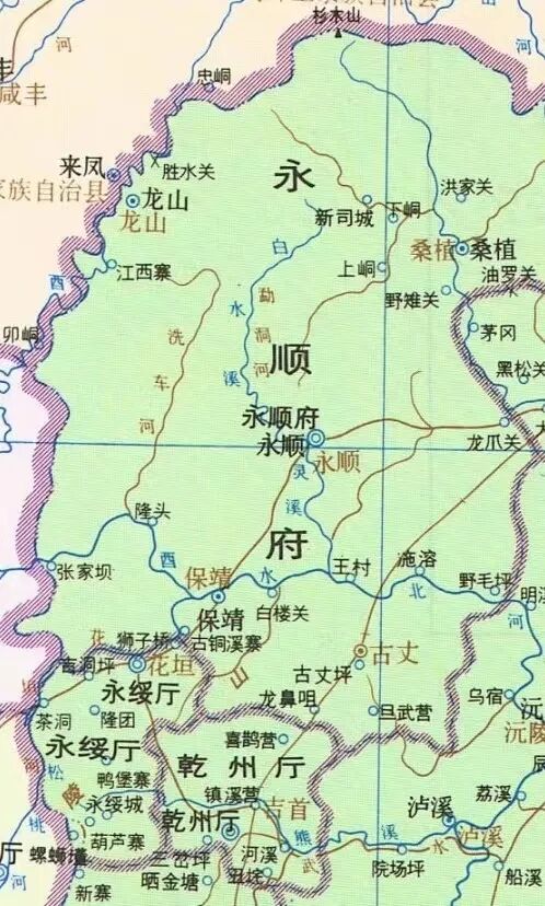 ▲永顺土司改土归流后的府县。(图片来源:《中国历史地图集》)