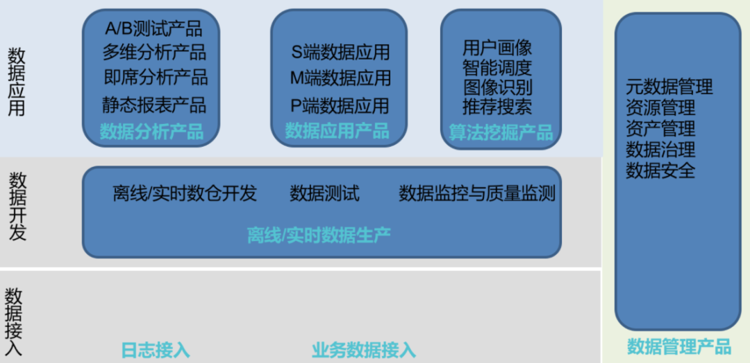 回看阿里的数据中台的定义是:方法论 + 组织 + 工具。其中,方法是OneID+OneModel+OneService;组织为从 IT 支撑到业务赋能的数据、技术、产品相匹配的人才结构,包含数据产品经理、数据研发、数据科学家等多角色;工具为采集、构建、管理、服务等。广义上,数据中台是指通过数据技术,对海量数据进行采集、计算、存储、加工,同时统一标准和口径。