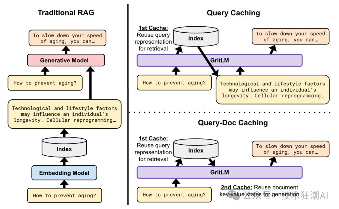RAG 是目前大语言模型应用中最常见的技术之一,它结合了检索器和语言模型来完成各种任务。传统的 RAG 方法效率较低,因为它需要对查询和文档进行两次编码:一次用于检索,一次用于生成。