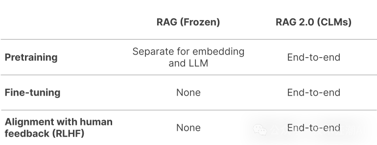 相比之下,RAG 2.0采用了一种全新的思路,它将语言模型和检索器整合为一个统一的系统,并对其进行端到端的优化。这意味着,从模型的预训练到微调,再到最终的对齐,所有的组件都作为一个整体进行训练和调整。通过这种方式,RAG 2.0能够更有效地协调语言生成和信息检索的过程,从而实现更流畅的交互和更高的准确性。