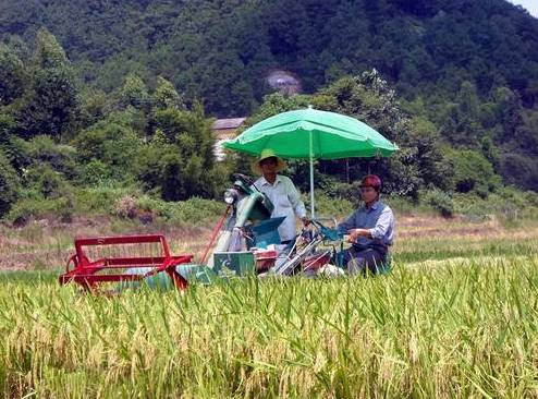 先是抛秧出现了,不用那么费劲的扯秧、插秧。接着就是收割机来了。
