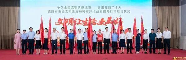 德阳市委常委、秘书长、宣传部部长吴成钢出席活动并致词,德阳市委常委、常务副市长罗智波,德阳市人大常委会副主任孙成斌,德阳市政协副主席张清良为行动队授旗并共同启动文明提升行动。