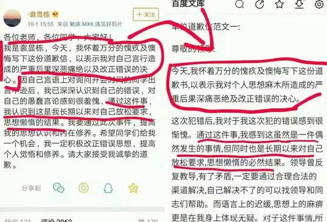 可网友却扒出来,这个道歉文居然是照搬的百度文库的