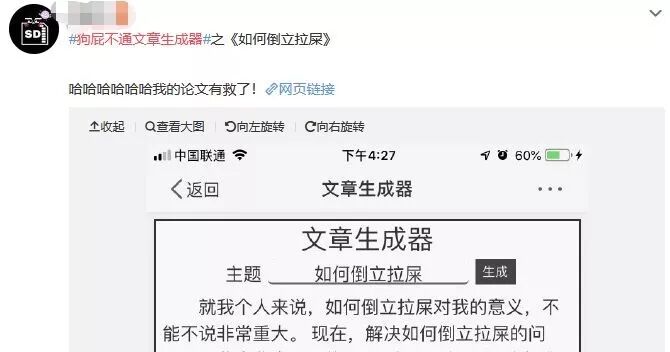 甚至一度有人怀疑,李小璐的文章是不是也用了狗屁不通文章生成器。