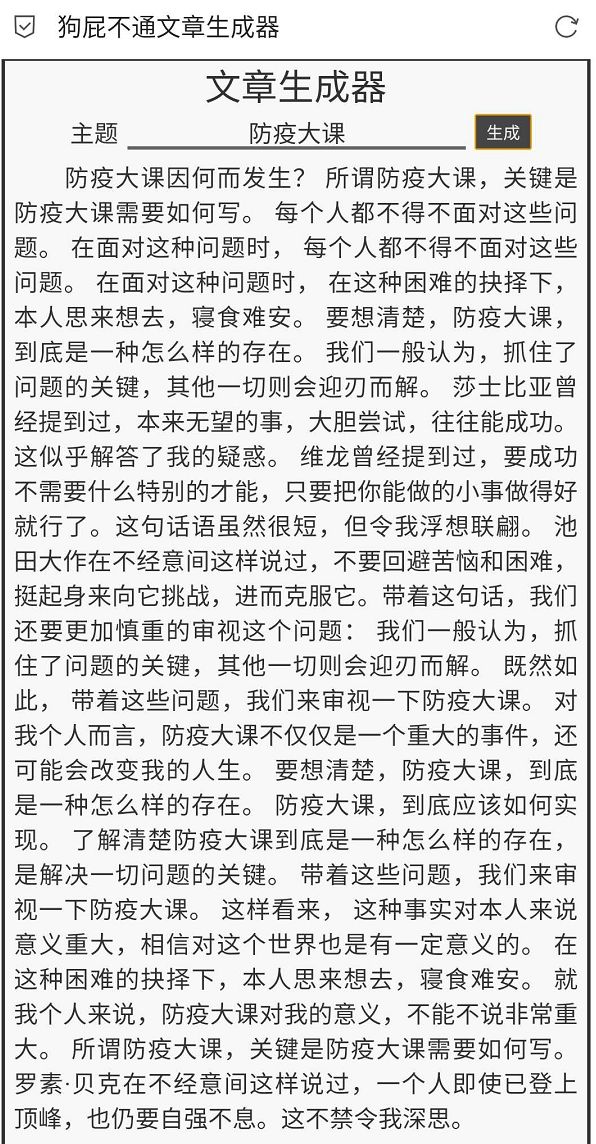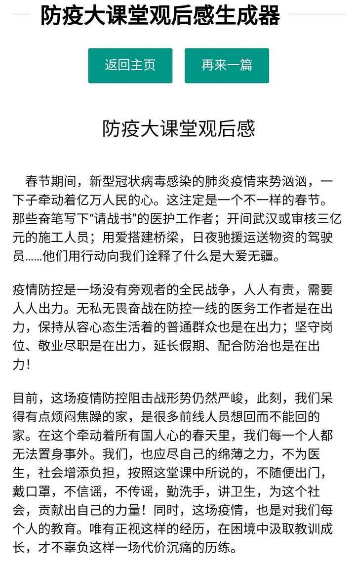 无论是“狗屁不通文章生成器”还是“防疫大课堂观后感生成器”