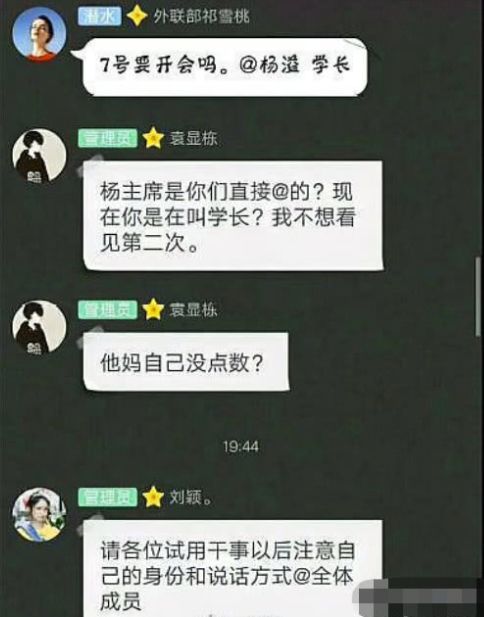 而被人在群里点名批评:要注意自己的身份和说话方式。