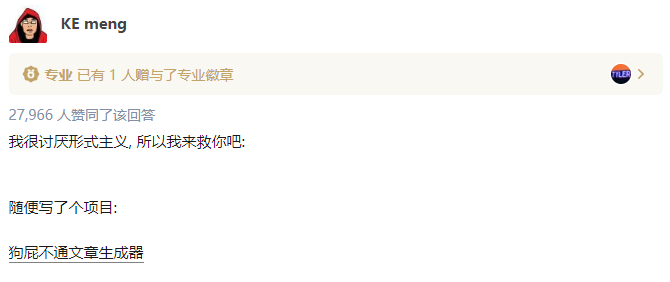 我更希望,大家能把这个生成器当成了对形式主义的一种讽刺。