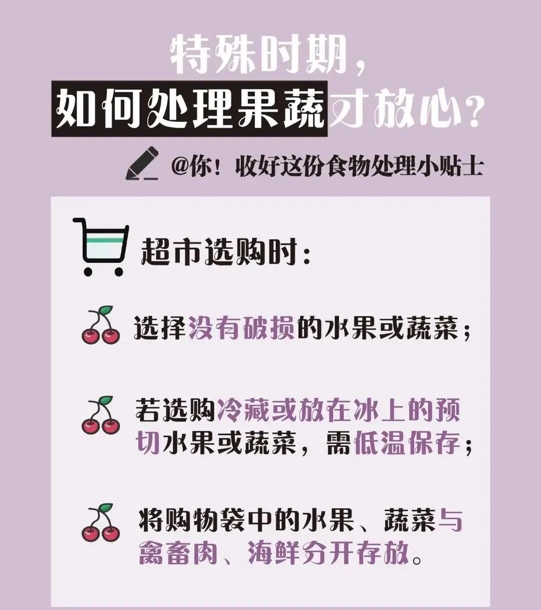 1. 谨慎购买进口冷链食品,尽量到正规的超市或市场选购生鲜产品。疫情期间,尽量不要网购中高风险区商品以及海淘、代购境外国家或地区商品。